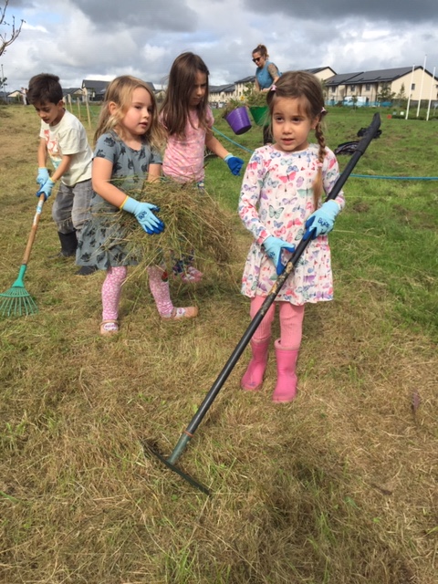 So the grass was cut and a call sent out for volunteers to help rake and take it away on the Saturday. What was especially pleasing was that a lot of parents turned up with their children and the kids had a great time.