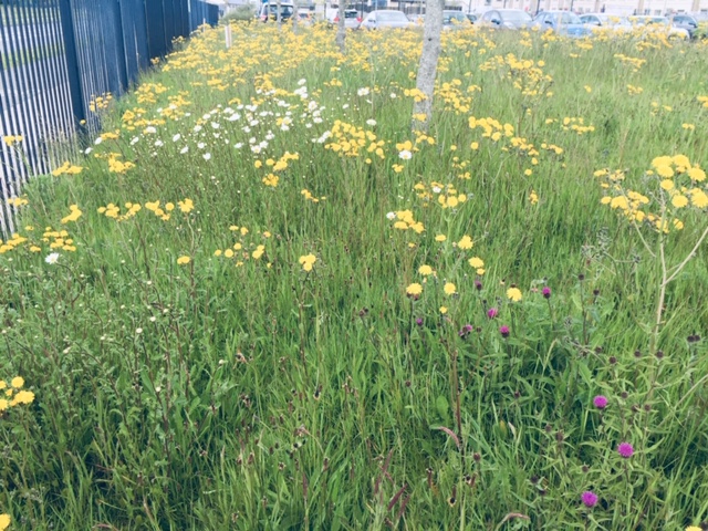 It’s exactly a year since we started the wildflower meadow in the Educate Together School so it was recently due its first haircut.