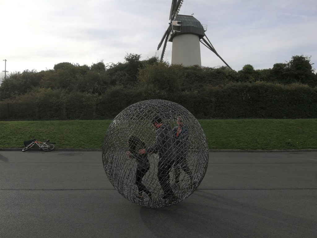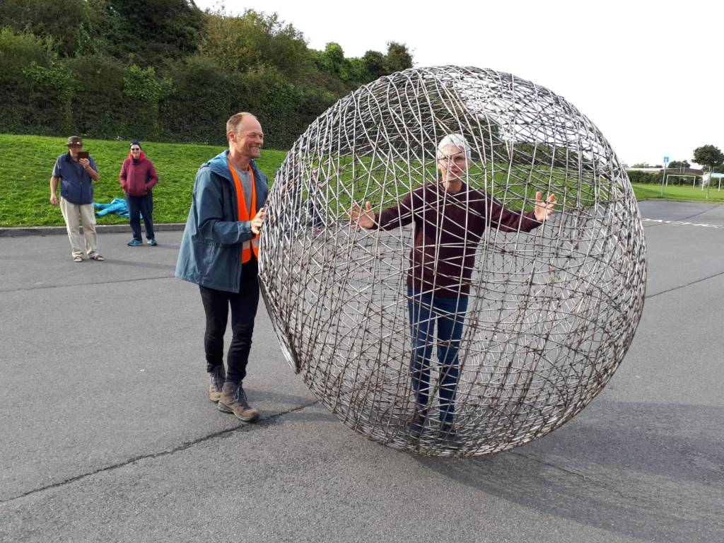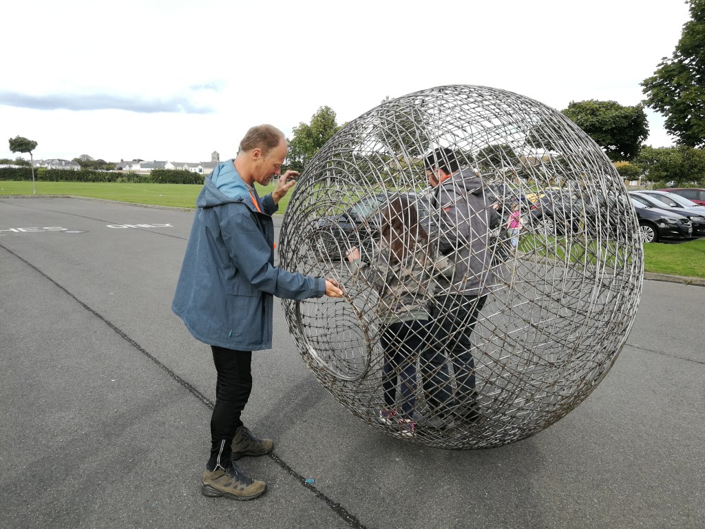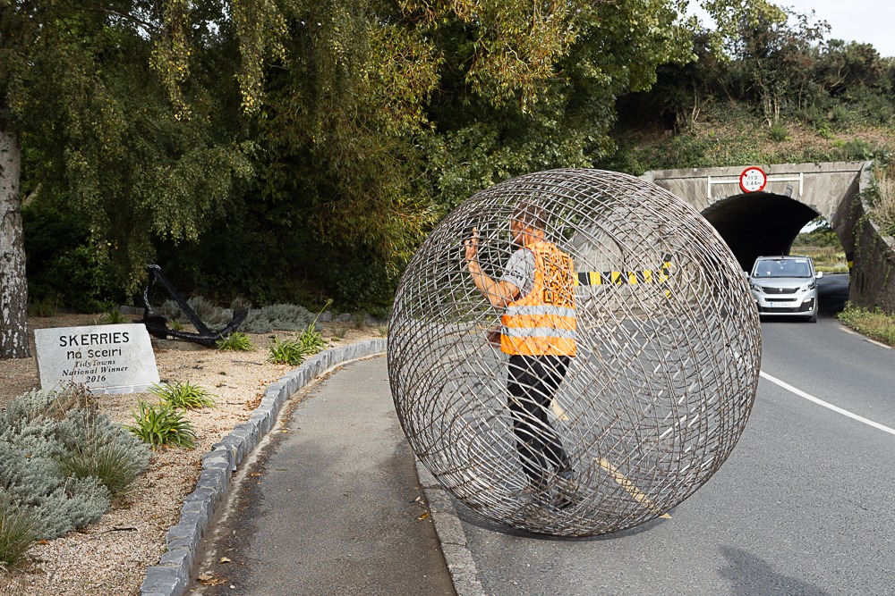 When the opportunity arose at very short notice to bring him en route from Dublin to Belfast through Skerries, we jumped. A few dozen Skerries residents gave Arnd and his human hamsterball a very warm welcome today (Sat 2 October 2021).
