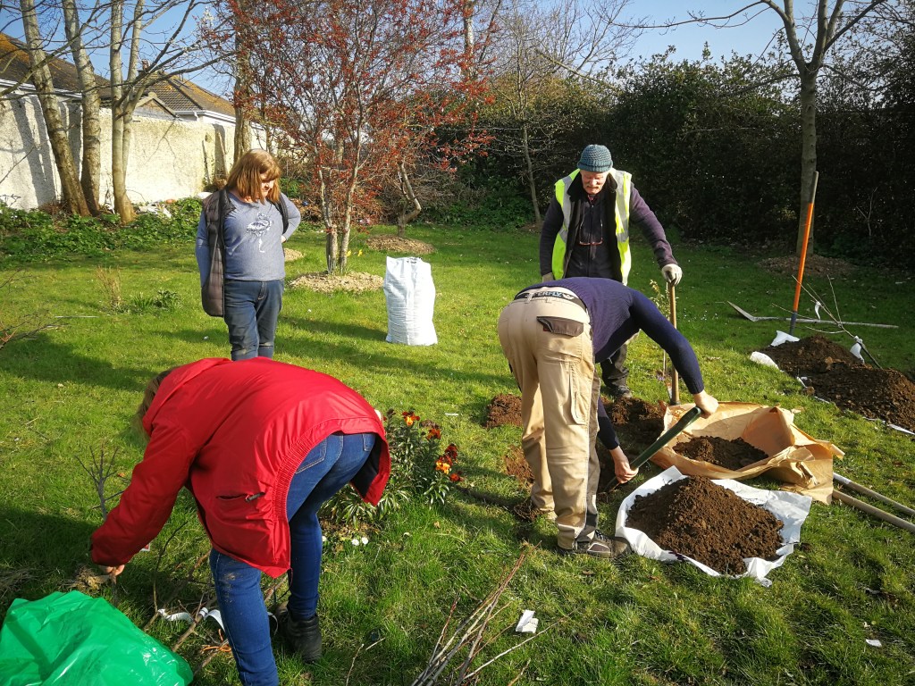 On Friday and Saturday, local residents and people from all over Skerries came together to plant more fruit trees in Mourne View and at the pedestrian lights and the Ballast Pit.