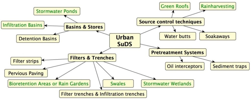 The focus here was on drainage beside roads as well as on the use of water butts and rain gardens in domestic settings.