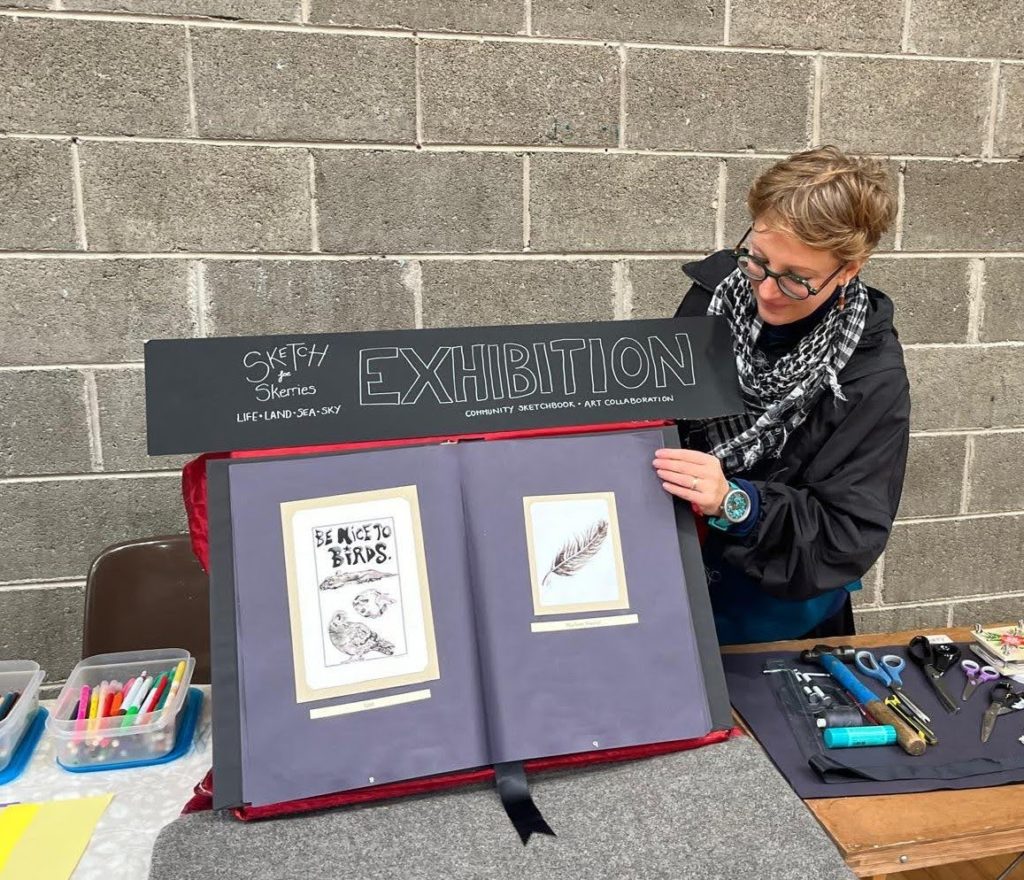 Members of the public and even some of the artists themselves arrived at Skerries Community centre on Sunday to turn the pages of the Sketch for Skerries “exhibition in a book”.