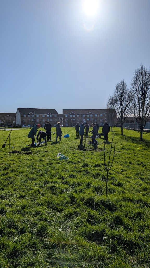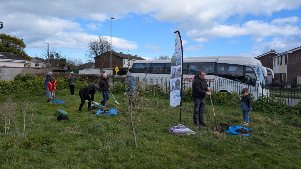 We also added something else, thanks to Fingal County Council: we were able to give away 20 young apple trees to local residents. Together with the 23 new trees planted into our mini orchards, that makes 43 new fruit trees added to Skerries this spring. That is 43 more trees to feed pollinators, brighten our greens with blossom, and later in the year, provide fruit for all of us to enjoy.