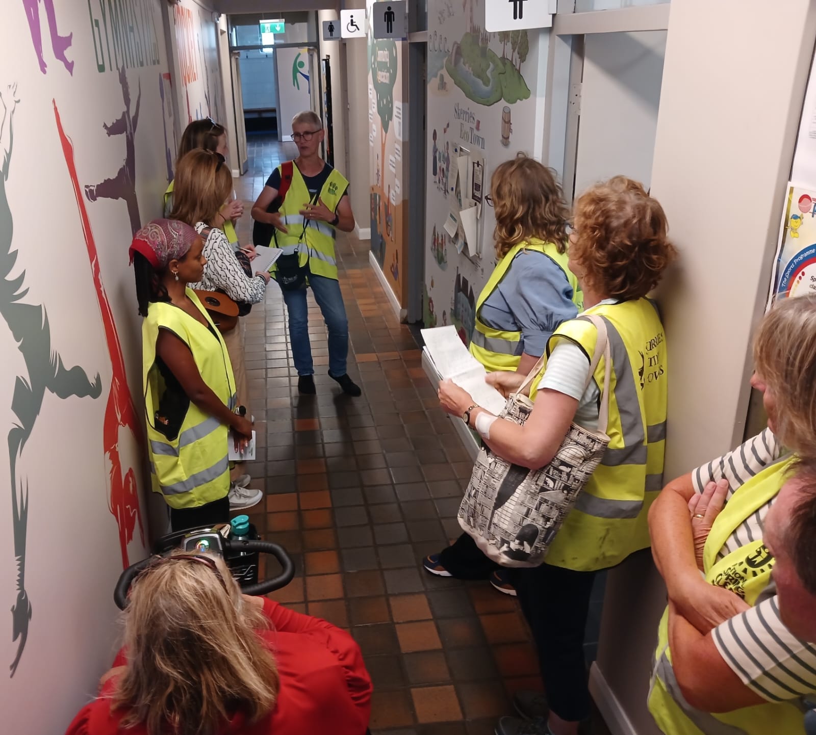 And so we showed off our community centre with its Skerries Community Association wall design, biodiversity-friendly planters, water refill station, bike stands, mini bee garden, water butt, rainwater garden and of course the Skerries Eco Town wall. And we gave Mary a copy of the wonderful Skerries Eco Town Booklet. We talked about water management and climate policy and hope and bees.