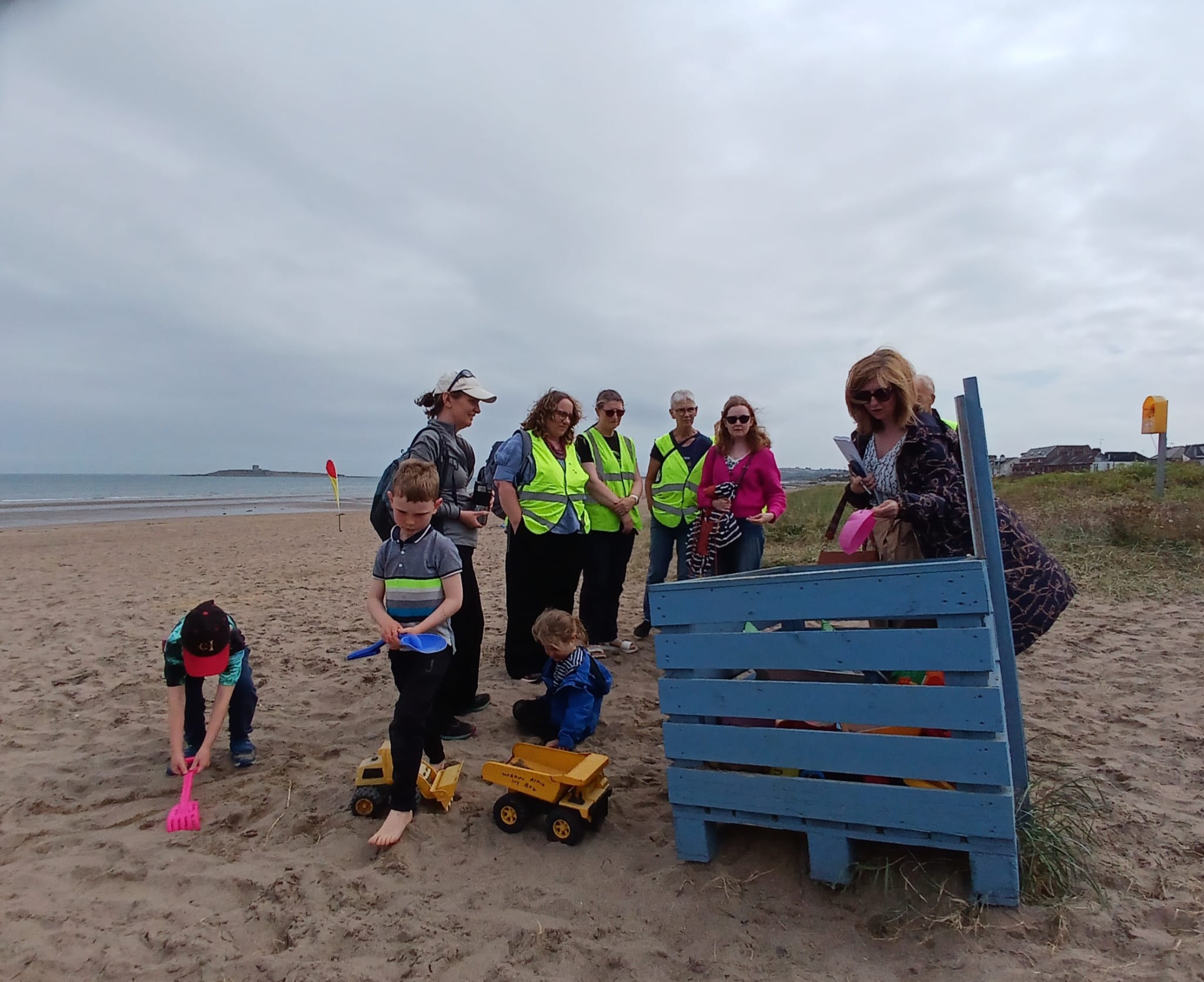 We showed Mary and Alan (who joined us there) the beach toy library, talked some more about pollinators and met the Cycling Without Age Trishaw. Currachaí na Sceirí were mentioned and their litter-picking expeditions to the islands off our shore. And of course Foróige and the Skerries Men’s Shed, who both helped with the beach toy library.