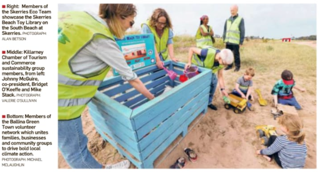 We were very proud to win Irish Times Greenest Place competition as Ireland’s Greenest Town, & delighted that the Beach Toy Library, plus our other water measures were singled out for praise.