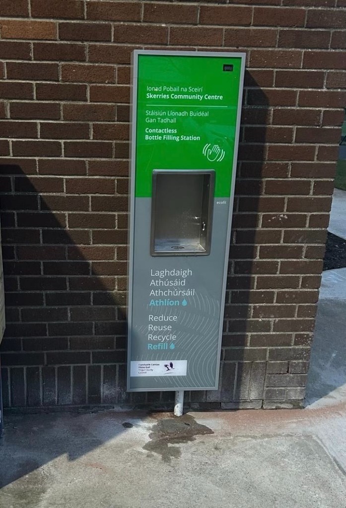 We requested that Fingal County Council install 2 water refill stations in Skerries at the Community Centre and beside the playground at Skerries Mills. These help people avoid single-use plastics. The refill station at the Community Centre has dispensed over 35,000 bottles worth of water to date. In Fingal, that’s second only to the one in Ardgillan.