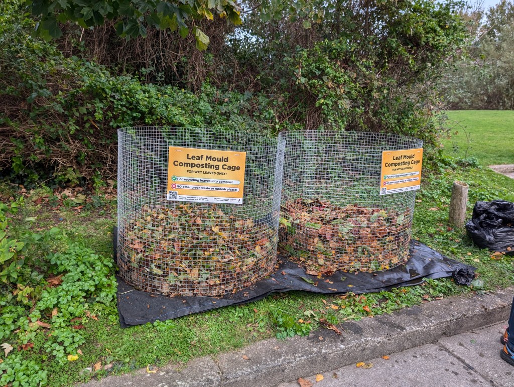Leaves swept from paths, pavements, or roadsides can be turned into leaf mould — a dark, crumbly soil improver that enriches our gardens and reduces waste.