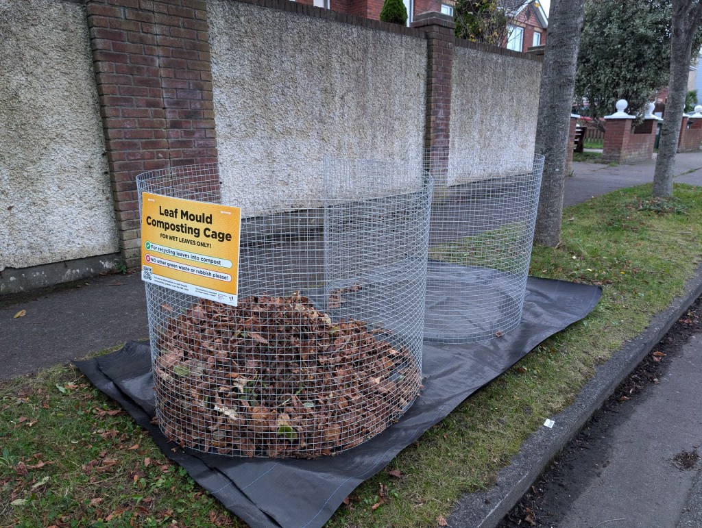 These cages are part of Fingal County Council’s Community Leaf Mould Composting Project, which helps neighbourhoods all over Fingal turn a waste problem into a valuable resource.