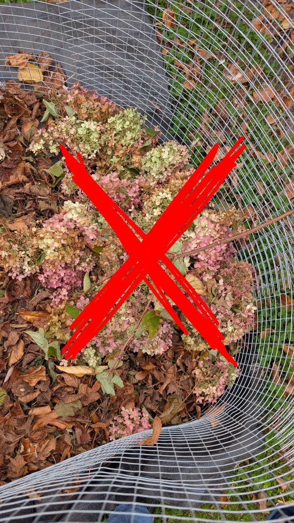 Use the cages for wet deciduous leaves only. No branches, grass cuttings, or other green waste, please.
