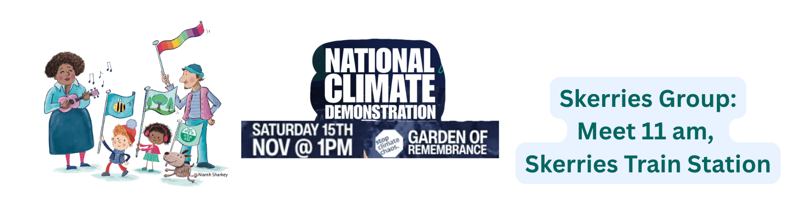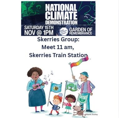 Skerries Group for National Climate March: Sat 15 November Meet at Skerries Train Station, 11 am (Train departs 11.10 am) Let’s make this our biggest turnout yet!