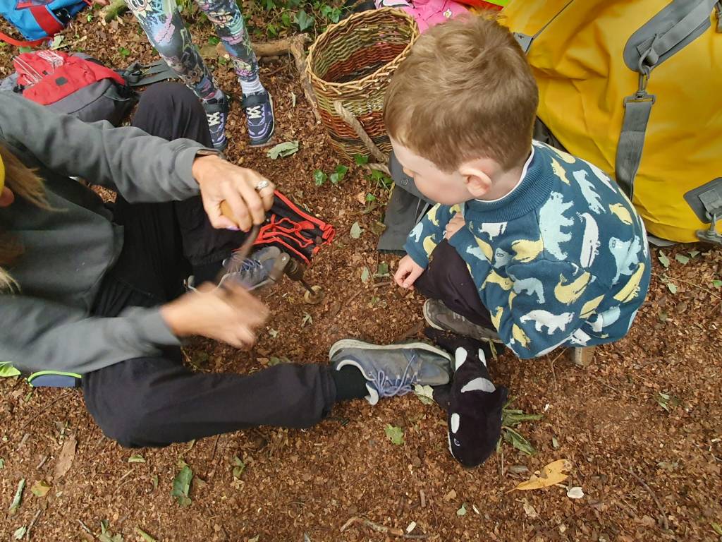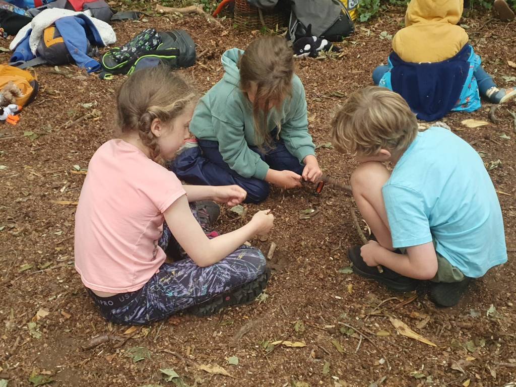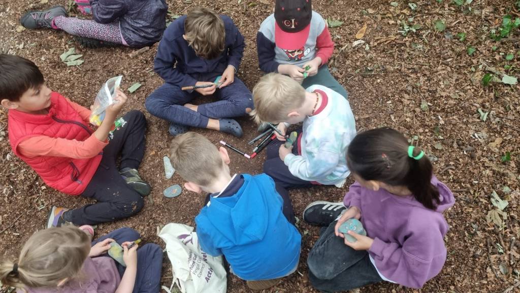 A Week of Outdoor Learning and Community Connections This August, Sustainable Skerries, with the generous support of Fingal County Council, were delighted to host a week-long Forest School in Ardgillan, delivered by Free Range Outdoor Education (www.froe.ie). The project gave 20 children aged 6-10 the chance to spend time outdoors in a non-competitive, non-pressured setting, exploring nature through play and creativity. Five Days of Forest Adventures From the very first morning, the group jumped straight into Ross and Miriam’s nature-based games and team activities and quickly found their rhythm in the forest. Over the course of the week the children painted rocks, explored plants, made sycamore boxes for collecting blackberries and tried their hand at safe foraging with Nettles and Alexander. They learned how to carve and sharpen tools, created bows and arrows and crafted forest treasures to take home. The games involved learning about native animals and wildlife and encouraged listening and cooperation. Plenty of time was spent climbing trees, building bases and enjoying the freedom of being outdoors together. The children showed wonderful enthusiasm and creativity throughout the week.