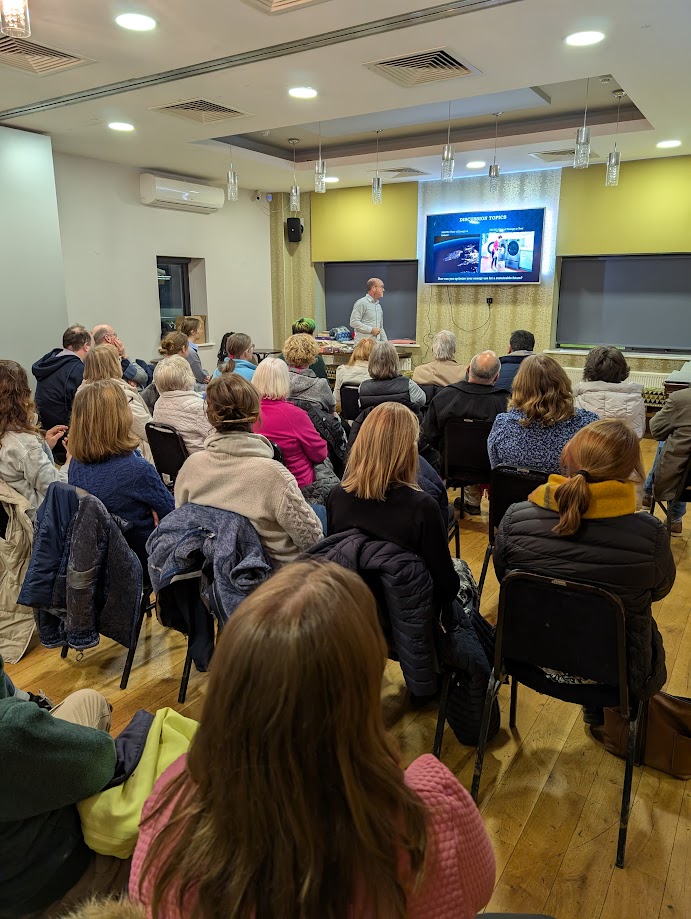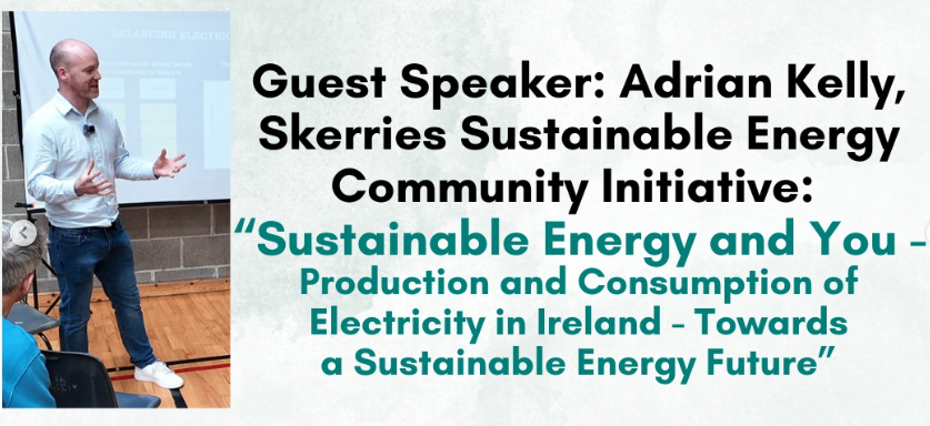 Adrian Kelly, part of the Skerries Sustainable Energy Community Initiative, held the full attention of his audience during his talk on “Sustainable Energy and You: Production and Consumption of Electricity in Ireland – Towards a Sustainable Energy Future.”