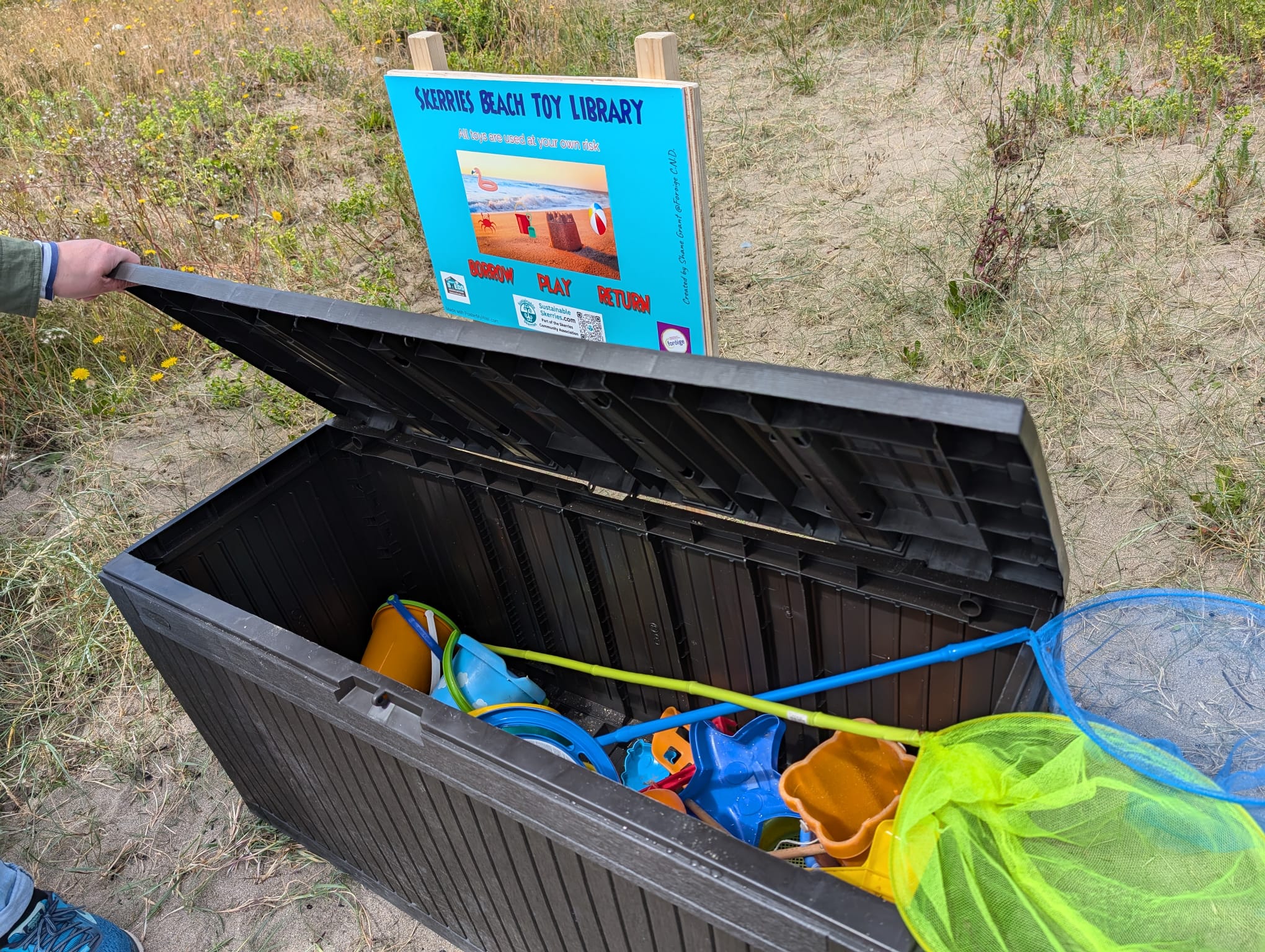 This initiative stemmed from a suggestion in the Chat4SustainableSkerries WhatsApp group; where a member spotted a beach toy box in Clogherhead, Co. Louth, and mentioned how great it would be to have something similar in Skerries.