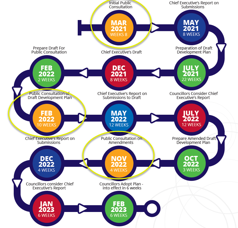 We note that in the current County Development Plan, it was the intention to draw up local plans, which however did not happen.