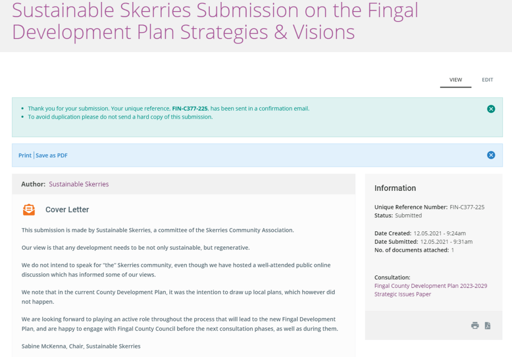 This submission is made by Sustainable Skerries, a committee of the Skerries Community Association.