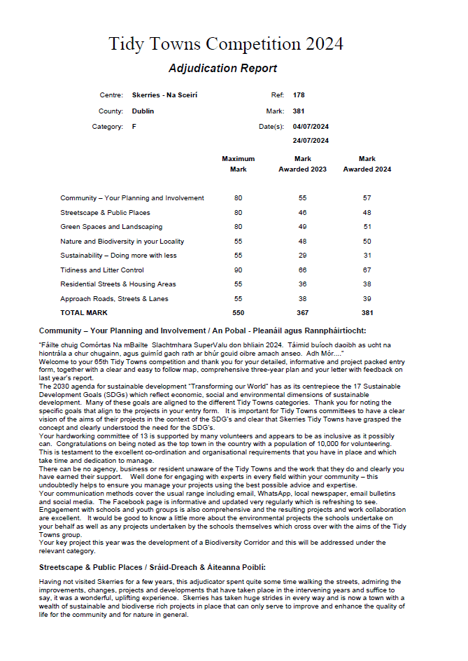 Skerries Tidy Towns: Adjudicators’ Report 2024