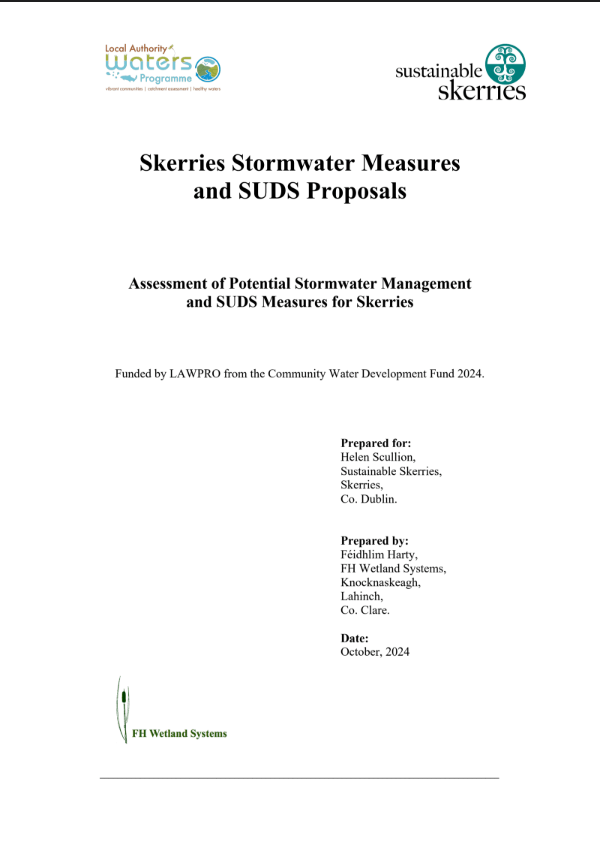 - the Skerries Stormwater Measures and SUDS Proposals drawn up 2024 for Sustainable Skerries, see our Water page