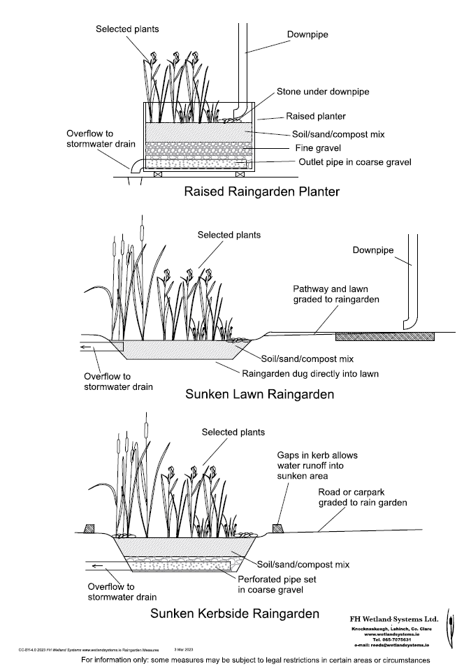 Water butts, raised beds, planters, and rain gardens in public areas and around people’s homes are part of the solution. Scroll down to see the video of the July 2024 online talk with Féidhlim Harty, as well as to a bit more background to the 2024 LAWPRO-funded water project. At the very bottom of this page, you will find a plethora of useful resources – including a super useful overview of planting suggestions for rainwater planters and rain gardens..